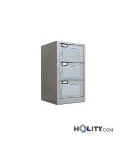 meuble blindée à 3 tiroirs avec serrure à double panneton. Dimensions externes : L.31.8 x P.33 x h.56 cm.