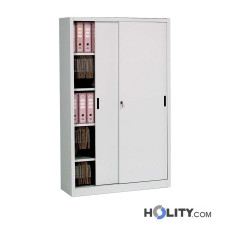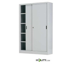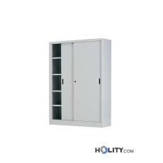 Armoire-classeur en métal avec portes coulissantes. Avec 2 compartiments intérieurs et 2 étagères réglables par compartiment.. Dimensions : L.180 x P.45 x h.116 cm.