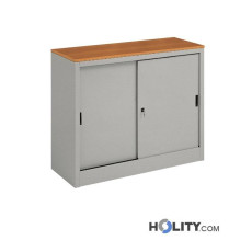 Meuble classeur pour aménagement de bureaux avec portes coulissantes. Dimensions: L.180 x P.45 x h.65 cm. Comprenant 2 compartiments intérieurs.