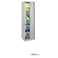 Armoire de bureau à 1 porte en tôle brillante et équipée de 4 étagères amovibles et réglables. Couleur: gris Ral 7035. Dimensions: L.60 x P.40 x H.176 cm. Poids: 30.30 Kg. Made in Italy.