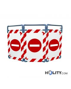 Barrière de chantier à 3 panneaux en inox et polyester, hauteur 1 m. Dimensions : L 170 x H 100 cm.