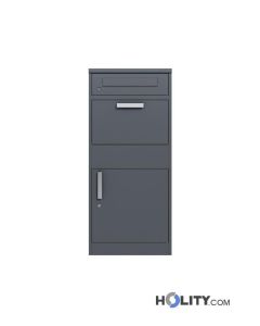 Boîte à colis en tôle galvanisée, retrait arrière. Dimensions : L 411 x P 251 x H 1148 mm.