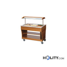 Les chariots de buffet sont des équipements indispensables pour les structures hôtelières, les salles de petit-déjeuner et les buffets. Ils sont utiles non seulement pour présenter les aliments directement à la vue de vos clients, mais aussi pour préserver la fraîcheur des plats froids en choisissant des vitrines réfrigérées dans lesquelles vous pouvez stocker des desserts, des salades, mais aussi des aliments raffinés tels que des produits de la pêche de qualité. Ces chariots permettent aux les clients de voir la qualité et la fraicheur des aliments et de choisir directement entre les diverses choix. Les chariots de buffet peuvent être réalisés en bois ou en acier inoxydable et leurs vitrines peuvent être refrigérés ou destinés à la simple présentation d'aliments chauds ou même à température ambiante comme les pâtisseries. Choisir une vitrine pour la nourriture garantie un respect des règles d'hygiène, tout en isolant les produits et en les éloignant des possibles sources de contamination.