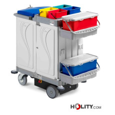 Chariot de nettoyage professionnel en milieu hospitalier. Avec moteur électrique pour la manutention de charges lourdes.
