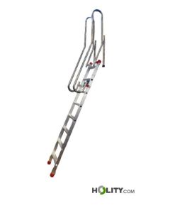 Échelle à pont avec châssis en acier inoxydable et marches en aluminium antidérapant. Charge 150 kg, idéale pour les inspections industrielles et l'entretien.