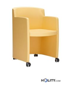 Fauteuil pour salle de comférence composé de roues à la base. Revêtement en simili cuir.