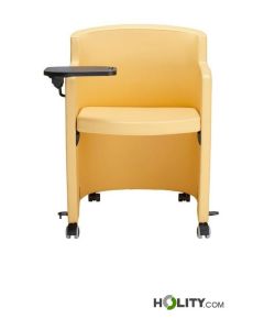 Fauteuil pour salle de conférence avec tablette écritoire et roues. Dimensions : L.63 x P.61 x h.88 cm. Article disponible en différentes couleurs.