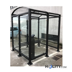 Cabine fumeur pour espaces publics avec couvertue en polycarbonate fumé. Dimensions: L.250 x P.170 x h.240 cm.