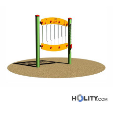 Jeux inclusif en forme de xylophone pour aménager les aires de jeux et parcs publiques. Disponible dans la version à enterrer ou plain-pied. Dimensions: L98 x P9 x H115 cm