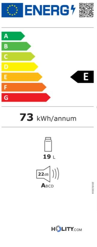 Minibar pour hôtel totalement silencieux avec une capacité de 19 L. Classe énergétique: E. Dimensions: H.450 x P.350 x L.402 mm.