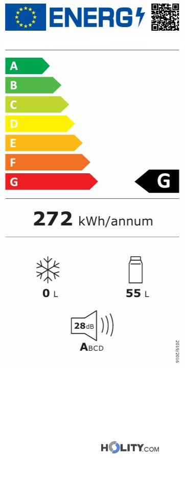Le nouveau système d’absorption de dernière génération est extrêmement efficace et permet une forte réduction des besoins énergétiques. Le minibar est également équipé de la fonction de veille : dans des conditions de non-utilisation prolongée du réfrigérateur, il réduit davantage la consommation, en réglant automatiquement la température du réfrigérateur sur le minimum.