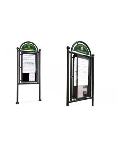 Panneau d’affichage avec plaque semi-circulaire amovible et personnalisable. Dimensions de la surface d'affichage: largeur cm.80 - hauteur 150 cm