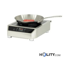 Plaque de cuisson à induction pour woks. Corps en acier inoxydable et plaque en vitrocéramique. Puissance : 3,50 kW.