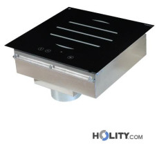 Plaque de cuisson à induction pour les cuisines professionnelles. Encastrée. Panneau de commande à distance encastré. Puissance : 650 W. Dimensions: L. 376 x P. 376 x h. 173 mm.