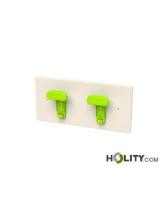 Porte-manteau pour crèche à 2 places en mélaminé ignifuge classe 1, L36xH17 cm. Structure en bouleau robuste et sûre pour les couloirs et les salles de classe.