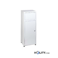 La porte à bascule permet de jeter les déchets en vidant simplement le plateaux, limitant le contact avec le contenu de la poubelle et favorisant les activités de nettoyage par la clientèle. Tous les modèles présents dans le catalogue Holity sont constitués de matériaux solides et résistants, de plus, ils sont facilement nettoyables.
