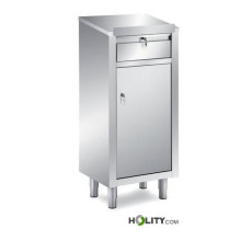 Armoire-pupitre avec tiroir en acier inox AISI 430 SB. L.50 x P.40 x h.115 cm. Avec tiroir. 1 porte. 1 étagère intérieure réglable. Pieds de levage.