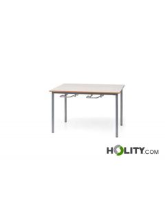 Table de cantine 4 places en acier (120x80 cm) avec guides intégrés pour chaises. Structure robuste et peu encombrante idéale pour les réfectoires et les environnements scolaires.