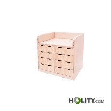 Meuble à une place pour crèches. Matériau : bois. Dimensions : L100 x P74 x H86 cm.